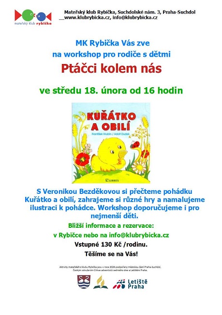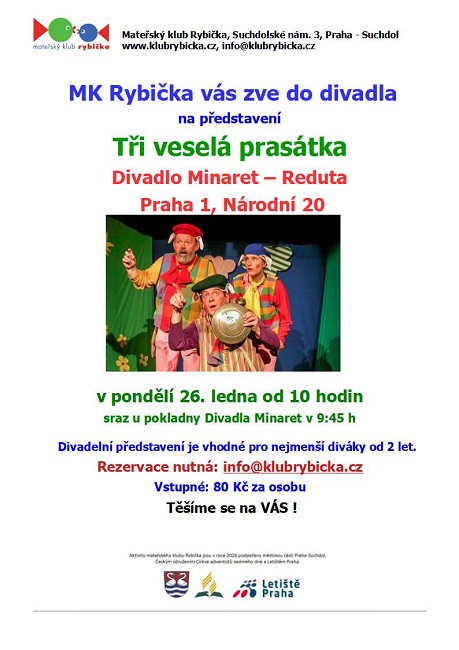 Upozorňujeme návštěvníky Rybičky, že v pondělí 26. 1. se NEKONÁ dopolední program Hvězdičky z důvodu společné návštěvy divadelního představení v divadle Minaret. Děkujeme za pochopení.