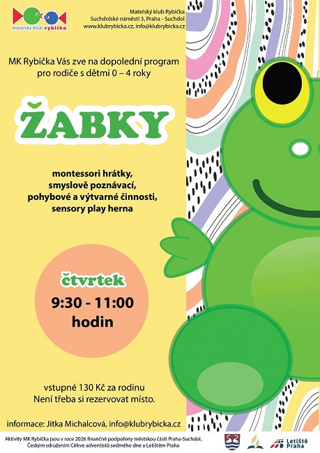 - čtvrtek Žabky pro rodiče s dětmi 0 - 4 roky, montessori hrátky, smyslově poznávací, pohybové a výtvarné činnosti, sensory play herna a výtvarné činnosti